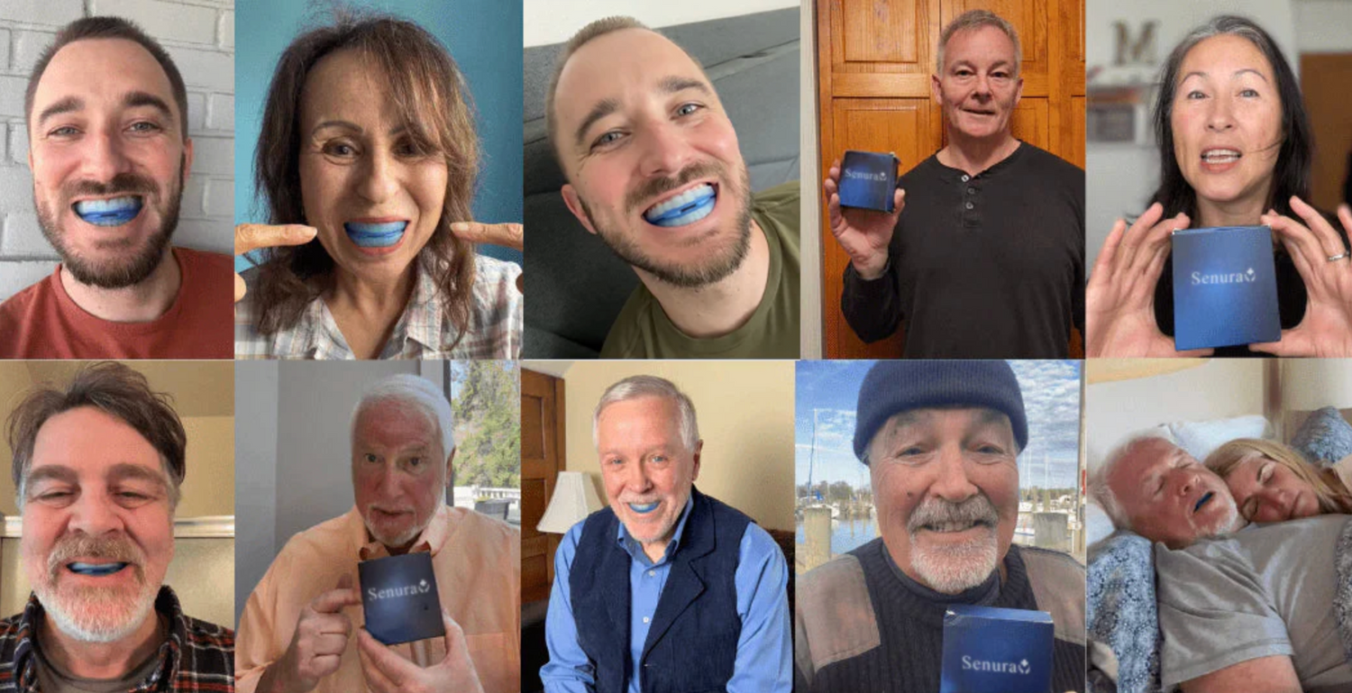Senura tento problém řeší mechanicky: jemně posune čelist dopředu o 3–5 mm → jazyk zůstává na místě → dýchací cesty zůstávají otevřené → vzduch proudí volně → ticho.